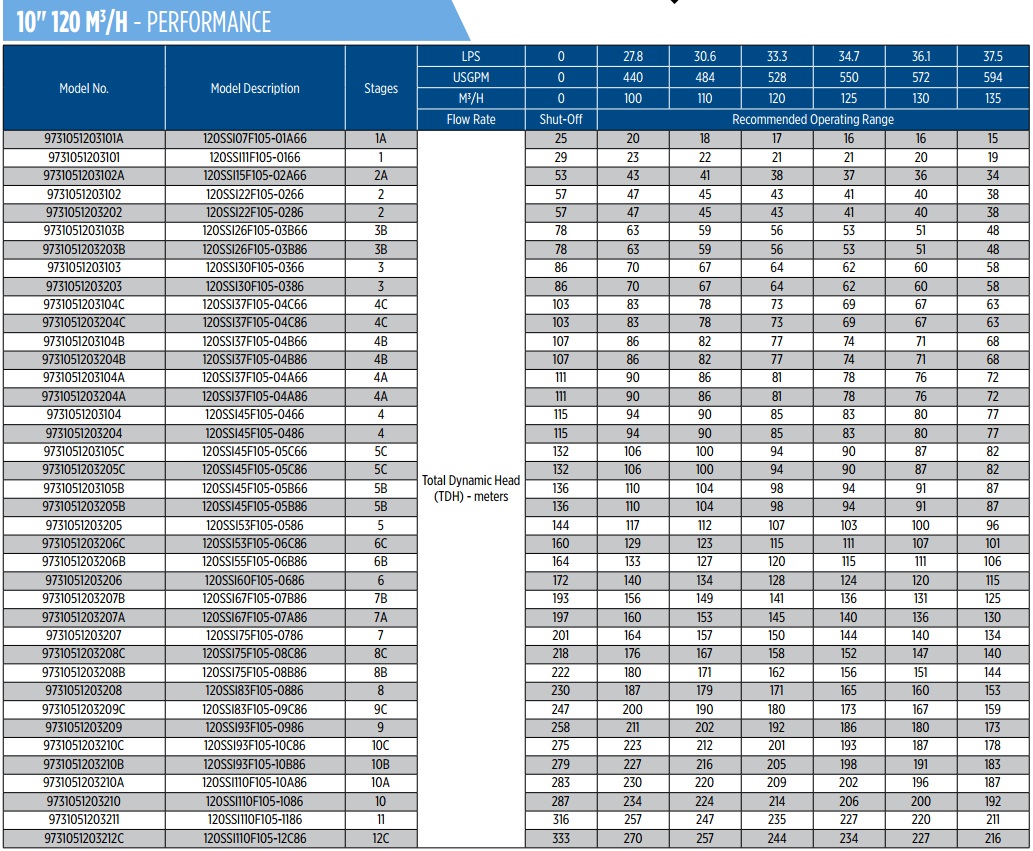 Các model bơm Franklin 10 inch loại lưu lượng 120m3/h