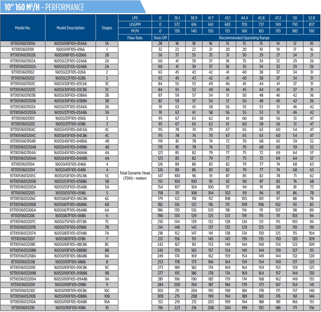 Các model bơm Franklin 10 inch loại lưu lượng 160m3/h